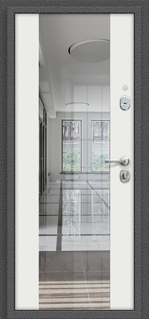 Отделка внутри: Панель МДФ с отделкой Эмалитом, толщина 8 мм, цвет белый, с зеркалом.