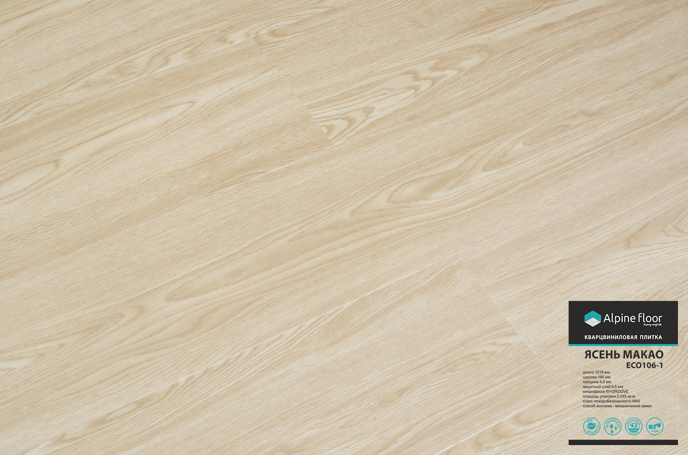 Кварцвиниловое покрытие ЕСО106-1 ЯСЕНЬ МАКАО