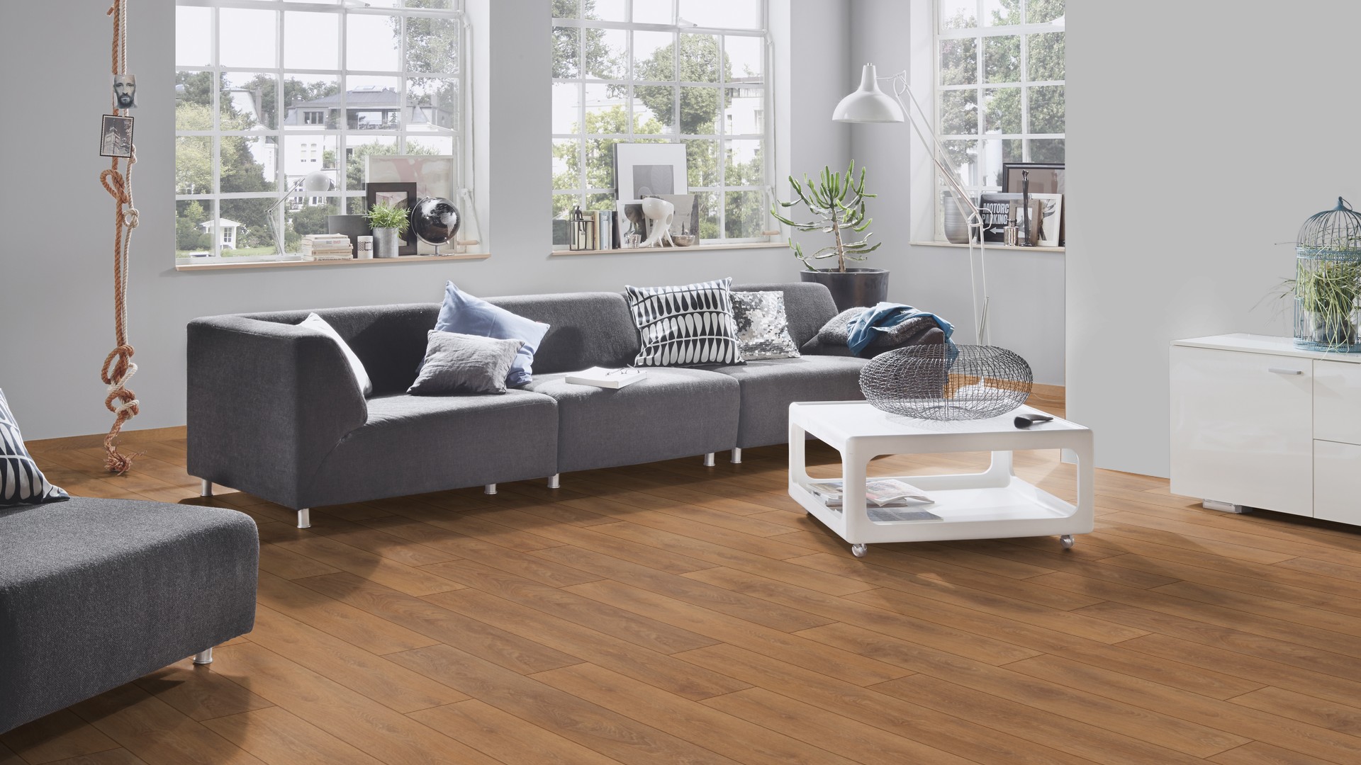 Благодаря высококачественному покрытию, ламинат устойчив к повреждениям, выдерживает значительные нагрузки и может использоваться в помещениях с повышенной влажностью без потери внешнего вида. Дополнительная обработка поверхности обеспечивает защиту от УФ-излучения и увеличивает огнестойкость ламината.
