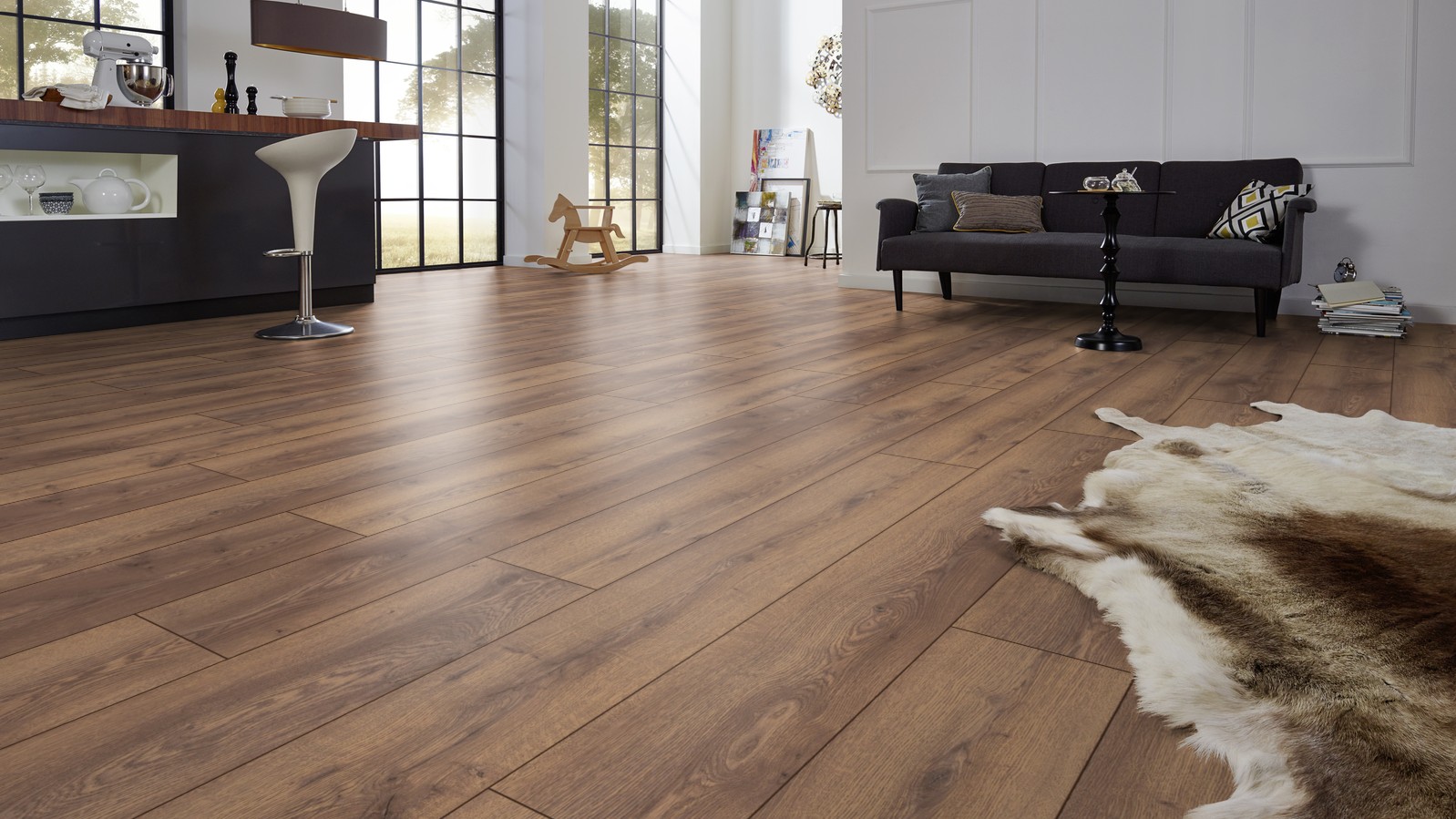 Страна производства Германия Коллекция ламината Mammut plus AC5/33 10 мм 4V Цвет Коричневый Класс пожарной опасности КМ 2 Производители ламината Kronotex Класс ламината 33 Толщина доски ламината 10 мм Размеры доски ламината 1845 х 244 мм Поверхность ламината глубокое тиснение совмещенное с рисунком древесины Упаковка ламината 1,800 м2, 4 доски, 16 кг Наличие фаски ламината 4х-сторонняя Тип рисунка ламината Имитация доски (1-полосный) Влагостойкость ламината Aqua Stop Порода дерева Дуб Срок эксплуатации ламината (в домашних условиях) 30 лет Замковая система Pic-Clik -