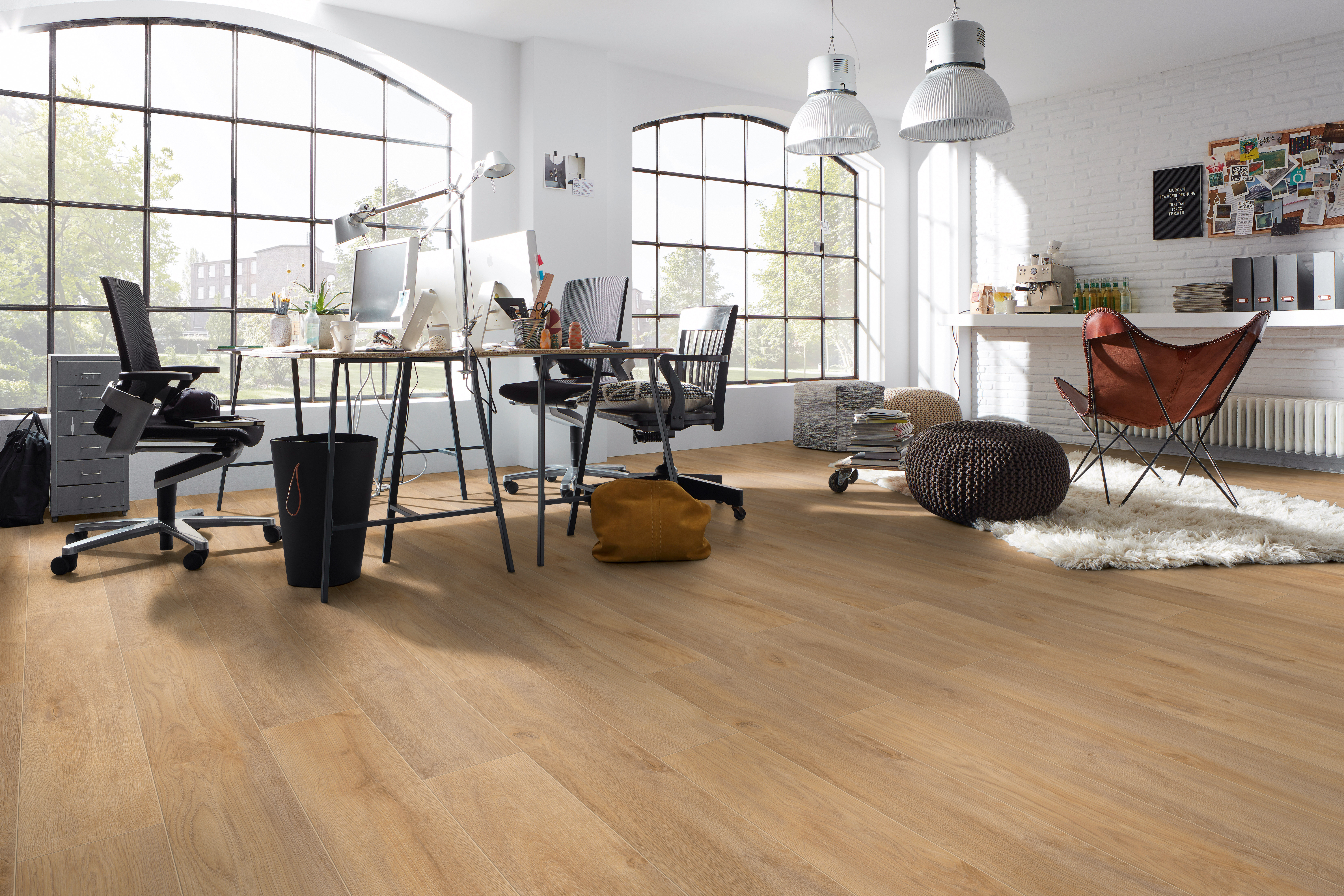 Ламинат Kronotex (Кронотекс) Дуб Премиум, произведенный в Германии, подходит для квартиры и офиса, где важны износостойкость и эстетичность. 33 класс износостойкости и толщина 12 мм обеспечивают прочность, необходимую, чтобы выдерживать нагрузку от мебели и ежедневной эксплуатации. Бежевый оттенок дуба в сочетании с однополосным дизайном смотрится благородно и визуально расширяет пространство. Фаска по периметру подчеркивает формат доски, делая напольное покрытие похожим на натуральный массив.