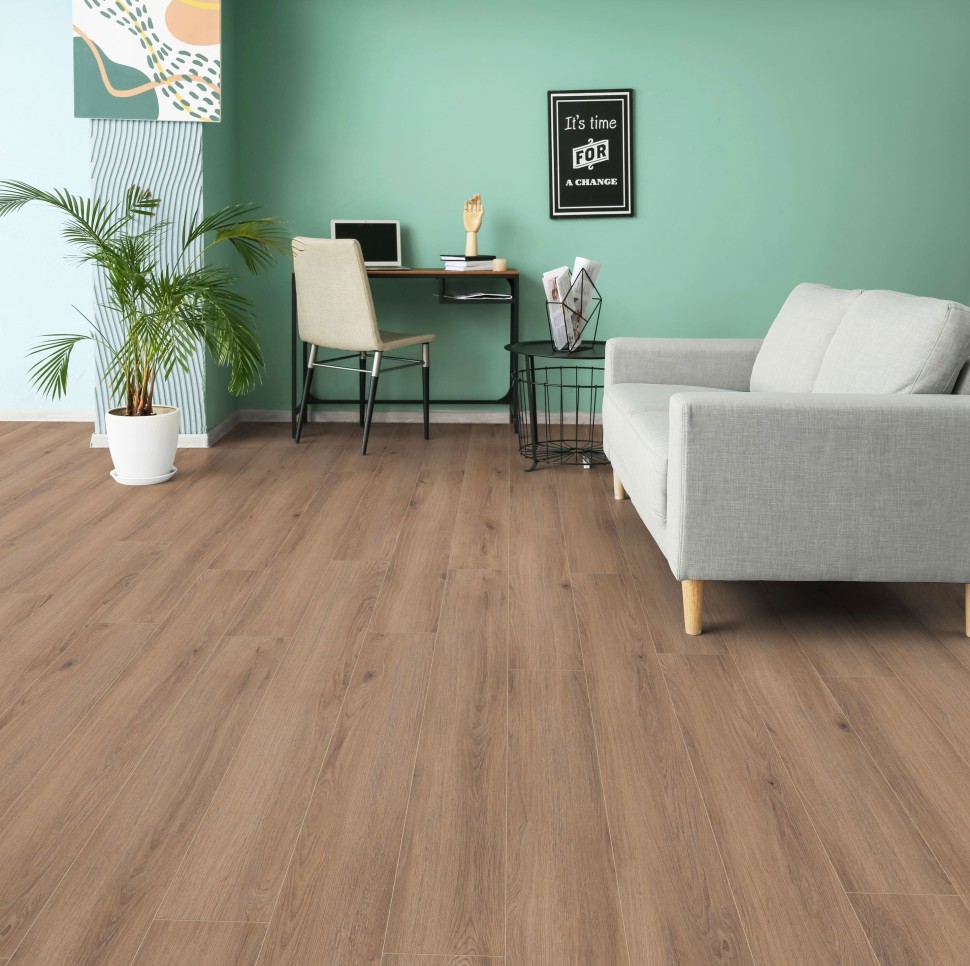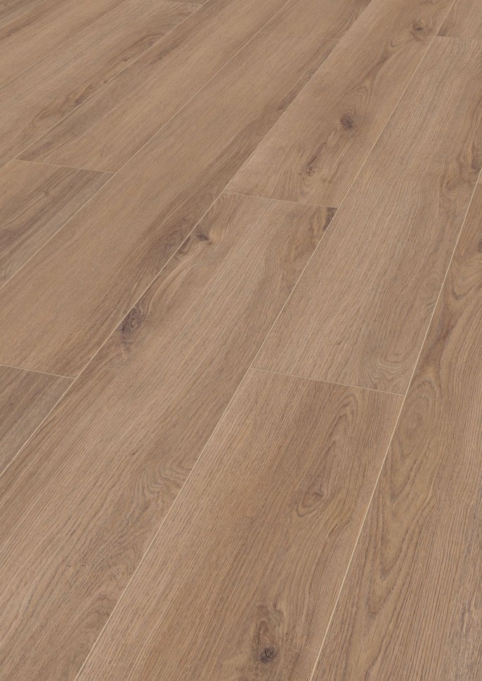 Ламинат Kronotex (Кронотекс) Дуб портовый — выбор для тех, кто ищет прочное напольное покрытие для квартиры или офиса. Класс износостойкости 33 и толщина 12 мм подходят для активной эксплуатации: в прихожей, гостиной или коммерческих помещениях. Темно-коричневый цвет и однополосный рисунок создают эффект массивной доски, а четырехсторонняя фаска формирует аккуратные стыки и придает полу рельеф.