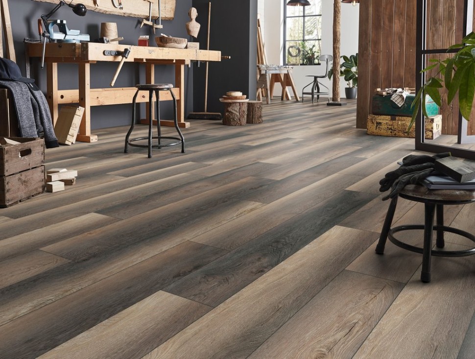 Ламинат Kronotex (Кронотекс) Дуб портовый — выбор для тех, кто ищет прочное напольное покрытие для квартиры или офиса. Класс износостойкости 33 и толщина 12 мм подходят для активной эксплуатации: в прихожей, гостиной или коммерческих помещениях. Темно-коричневый цвет и однополосный рисунок создают эффект массивной доски, а четырехсторонняя фаска формирует аккуратные стыки и придает полу рельеф.